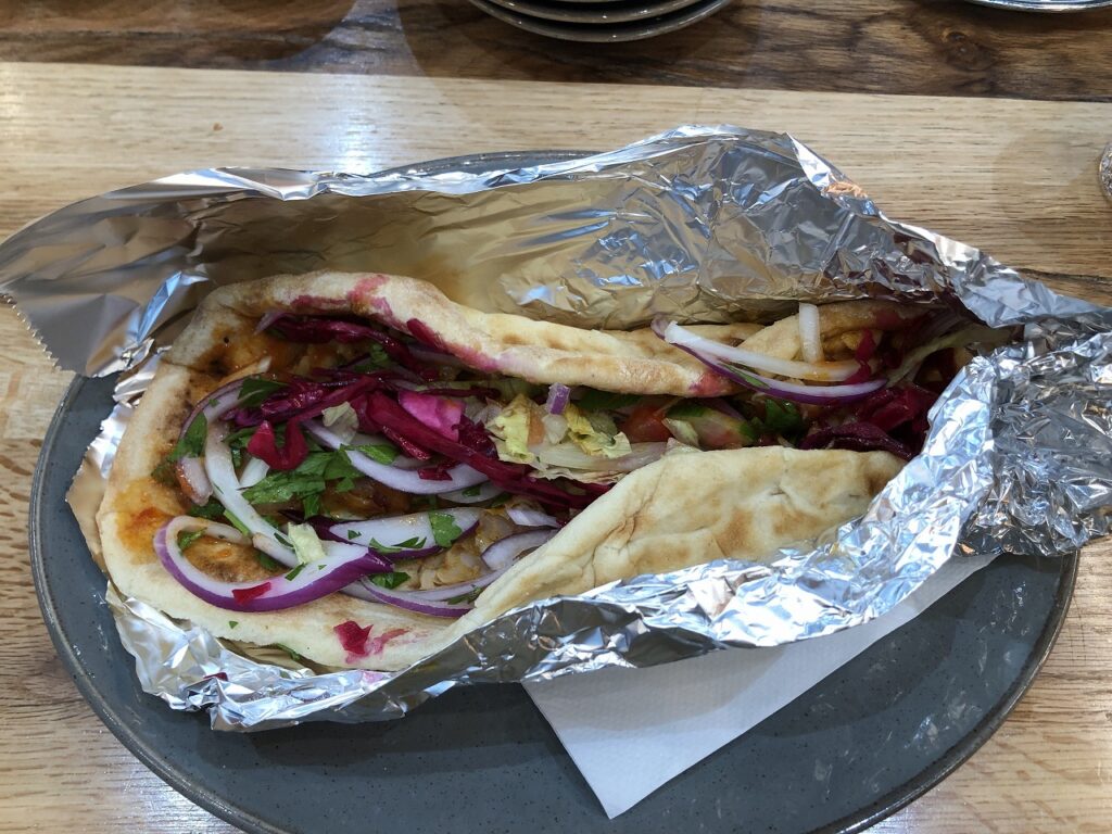 今回は8ユーロのドネルケバブを注文。トルコ風のジューシーなお肉がぎっしり詰まったピタパン、シャキシャキの野菜、そして濃厚だけど爽やかなソース。味は期待以上!しっかりスパイスが効いていながらもくどさはなく、日本人の口にもよく合います。
