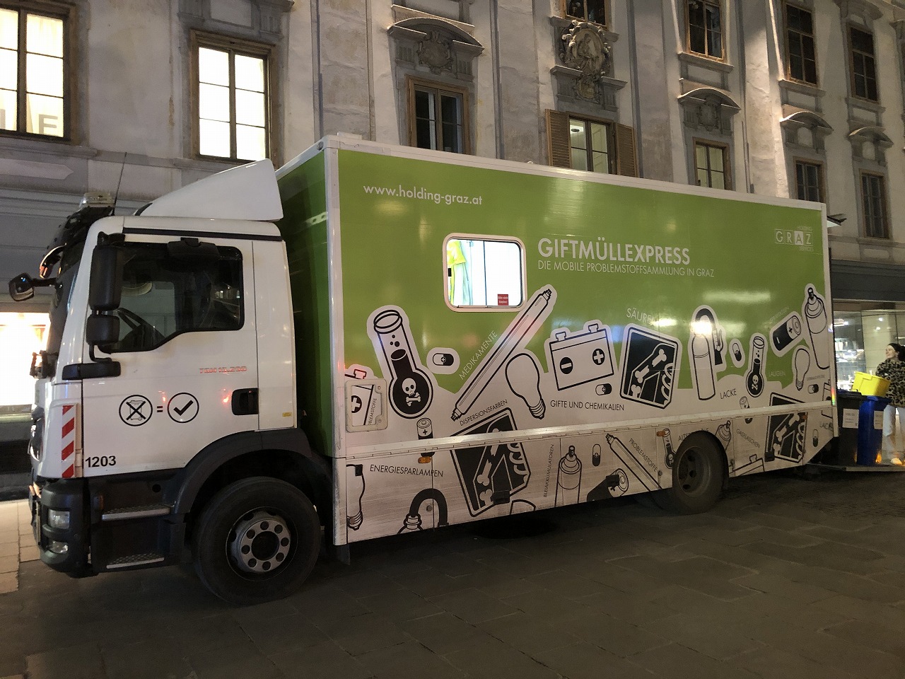 グラーツでは、市が関与するHOLDING GRAZが家電回収サービスを提供しています。正式には「Giftmüllexpress(ギフトミュル・エクスプレス)」と呼ばれる仕組みで、小型家電や有害ゴミを定期的に回収してくれます。
