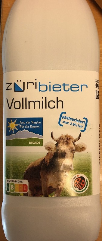 • zuribieter Vollmilch(最も安価な牛乳):1.8CHF / 1L