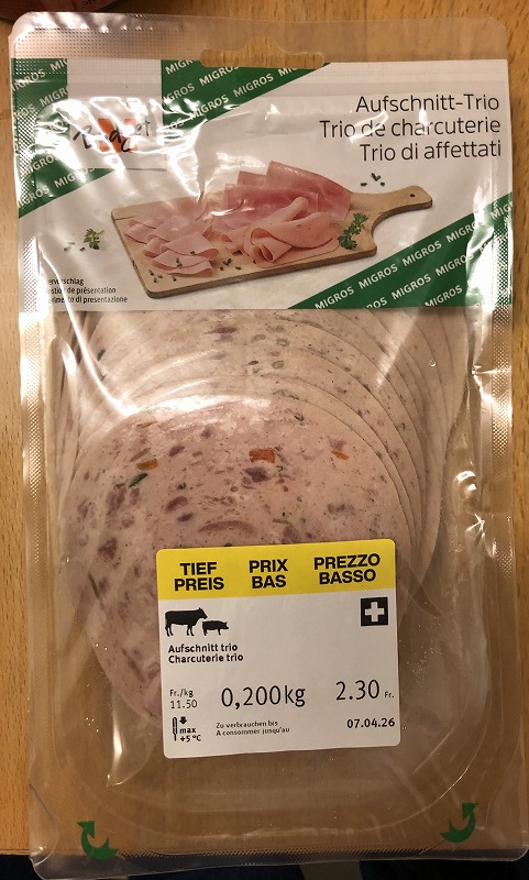 • M-Budget Aufschnitt-Trio(ハム):2.3CHF / 200g