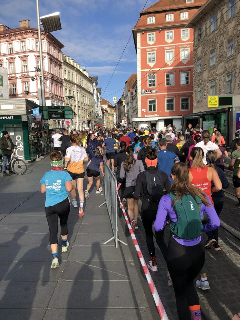でもその代わりに、シュロスベルグやハウプトプラッツ(中央広場)といった観光名所を巡りながら走れるので、これは本当に貴重な体験!しかも、コースはほぼ平坦で、初心者でも安心して走れる大会です。
