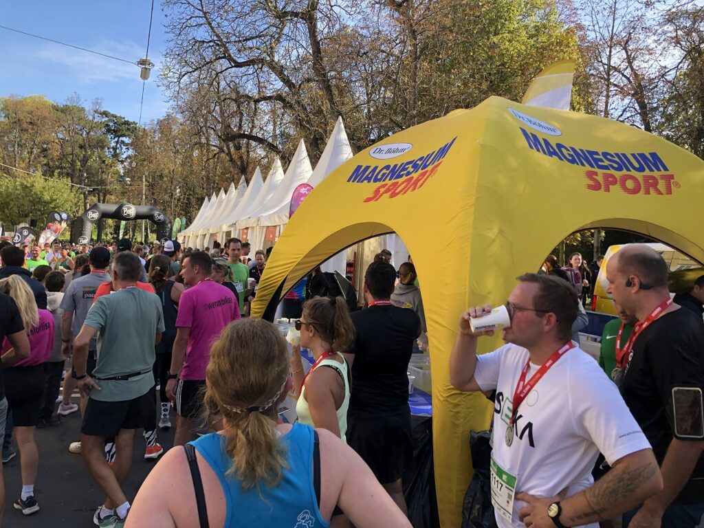 会場に着くと、とんでもない人混み!道路に入りきらない参加者が手前の広場まであふれかえっていて、スタートラインが見えないどころか、列にすら並べない状態。でも、DJが音楽を流して会場を盛り上げていたり、ビール片手に楽しんでいる人もいたりと、雰囲気は完全にフェス状態。走る前からテンションが上がります!