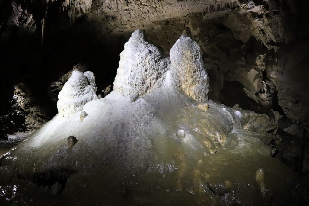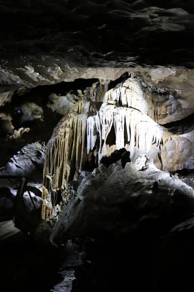 この鍾乳洞は、数十万年前から長い時間をかけて形成されたもの。ガイドさんによると、氷河期の時代でも洞窟内は外より温暖だったため、多くの動物たちが避難所として過ごしていたそうです。実際に洞窟内からは、当時の動物たちの骨の化石も多数発見されているのだとか。