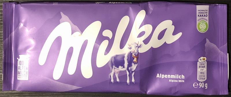 まずはMilkaの定番ともいえる Alpenmilch。いちばんスタンダードなミルクチョコレートです。