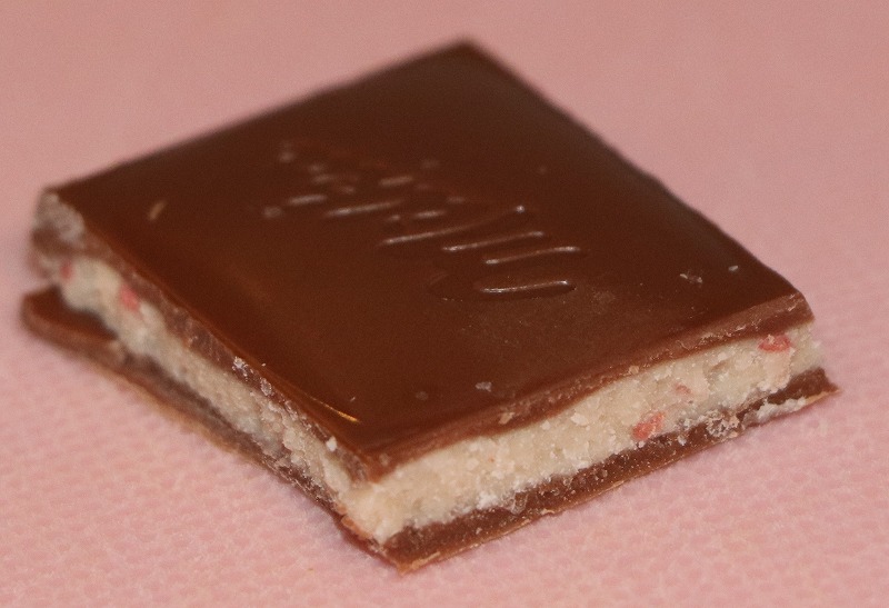 中にはストロベリー風味のクリームが入っていて、ミルクチョコの甘さとイチゴの甘酸っぱさがよく合っています。味としてはかなりデザート寄りで、スイーツ感覚で食べられるチョコレートです。