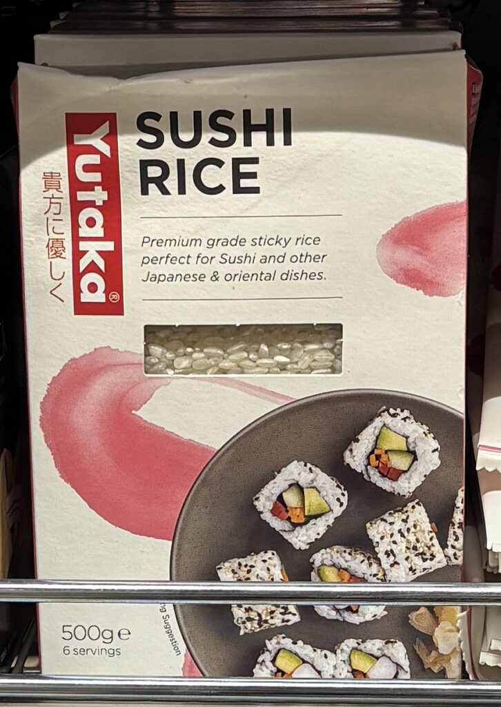 日本の寿司の名を冠したお米ブランドですが、以下の通り地雷もあるので気をつけてください。まずはまともなSUSHI RICEですが、こちらはリゾット米に近い触感で、2.58€/kgになります。