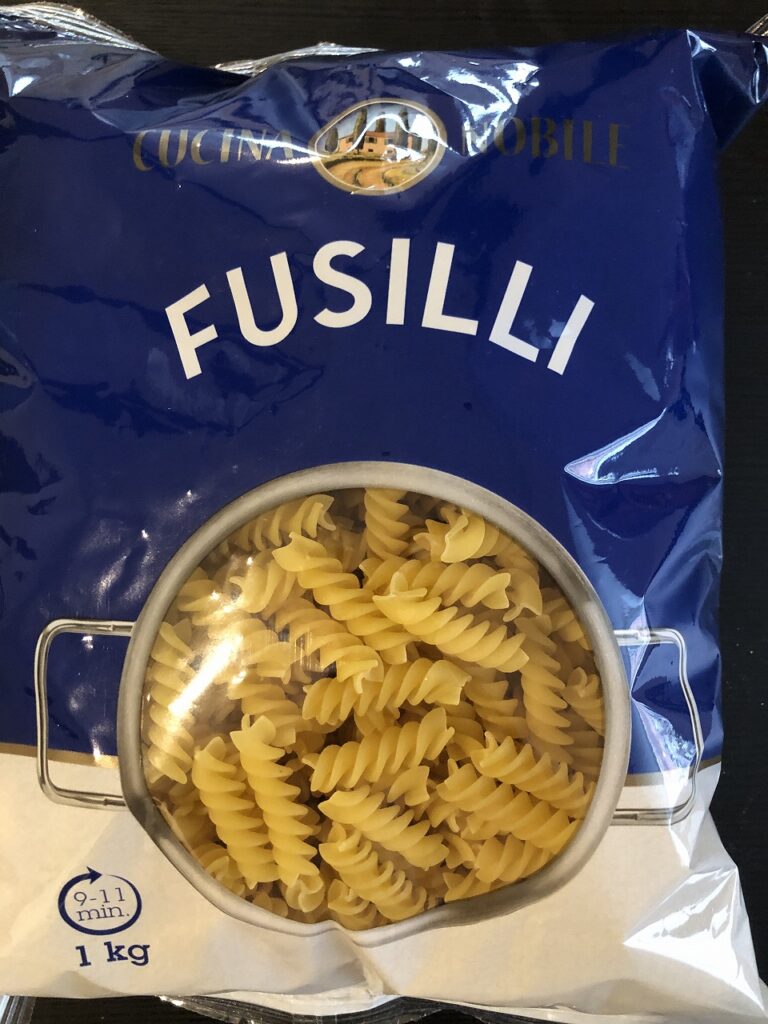ねじれた形が特徴のフジッリ。こちらもペンネと同様、オーストリアではかなり一般的なショートパスタです。