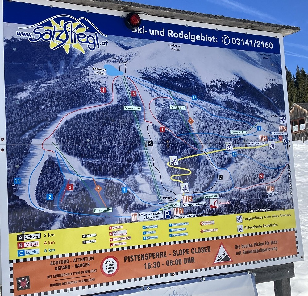 Salzstieglでは、コースマップ上で黄色で表示されている「Rodelbahn」がそり専用コースです。