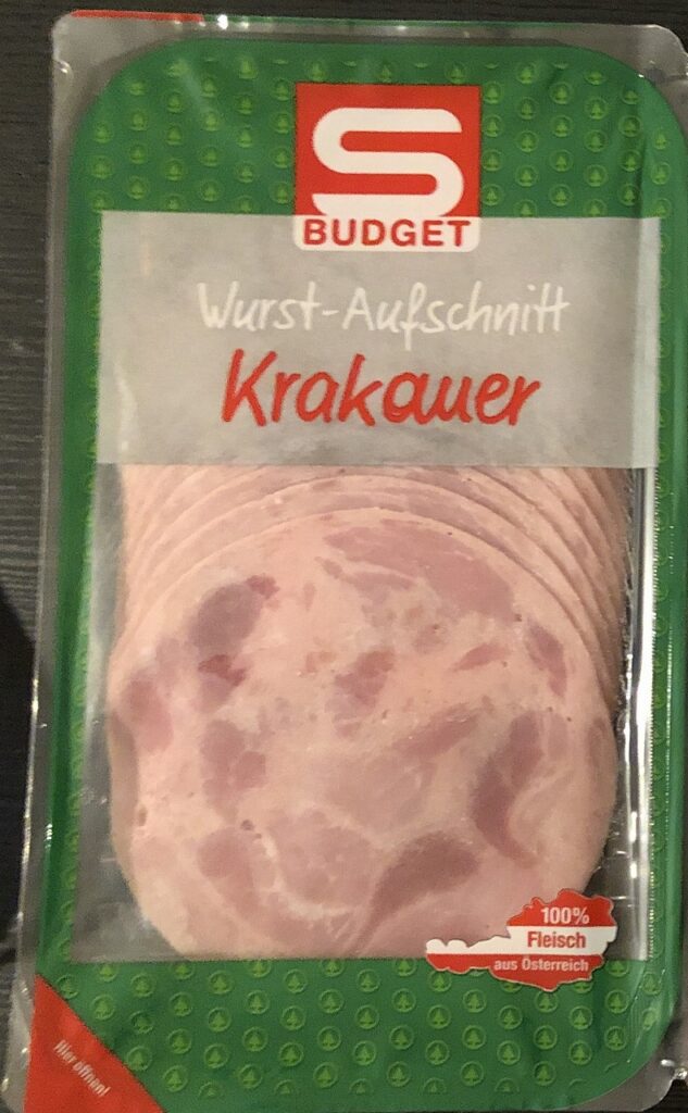次に試したのが「編み目模様」の入ったハム、クラカウアーです。一般的にはソーセージやハムの一種として知られ、粗く刻んだハム片が入っていたり、コショウやスパイスが効いていたりするタイプもあります。en.wikipedia.org+2Gurkerl.at+2