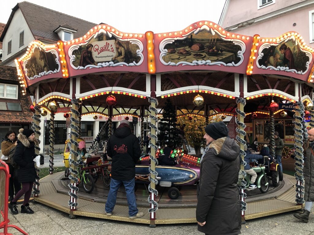 というシステム。家族連れの姿が多く、どの遊具も大賑わいでした。クリスマスマーケットの中にこうした遊園地エリアがあるのは、グラーツならではの温かい雰囲気かもしれません。