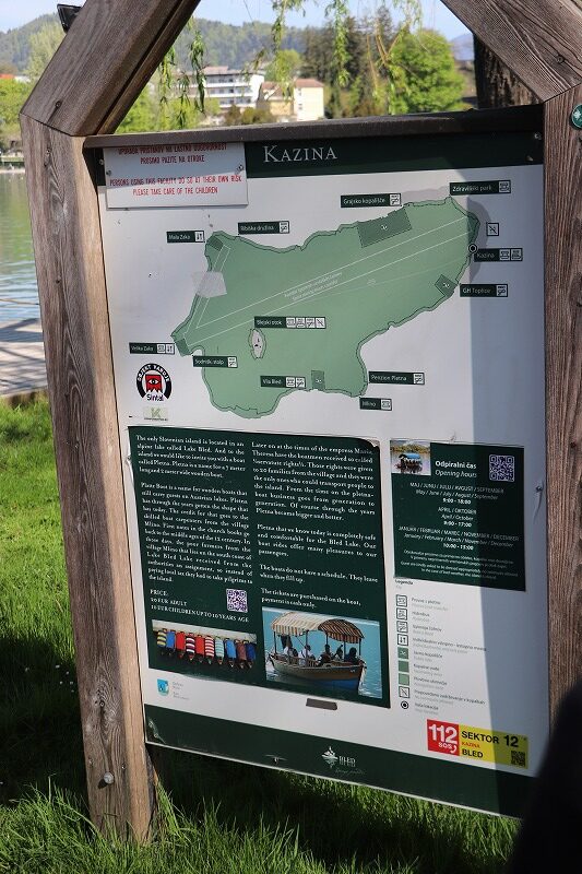 一方、聖マリア教会は湖の中央の小島にあります。湖畔から見ると島という感じはあまりしませんが、展望台から見るとしっかり島であることがわかります。