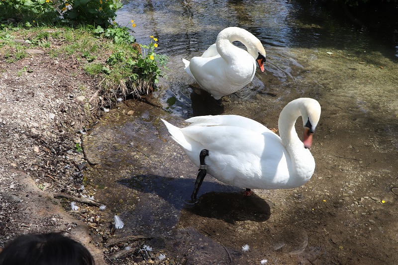 湖の水は透明度が高く、エメラルドグリーンに輝いています。魚も多く、白鳥もたくさんいて、歩いているだけでも癒される場所です。