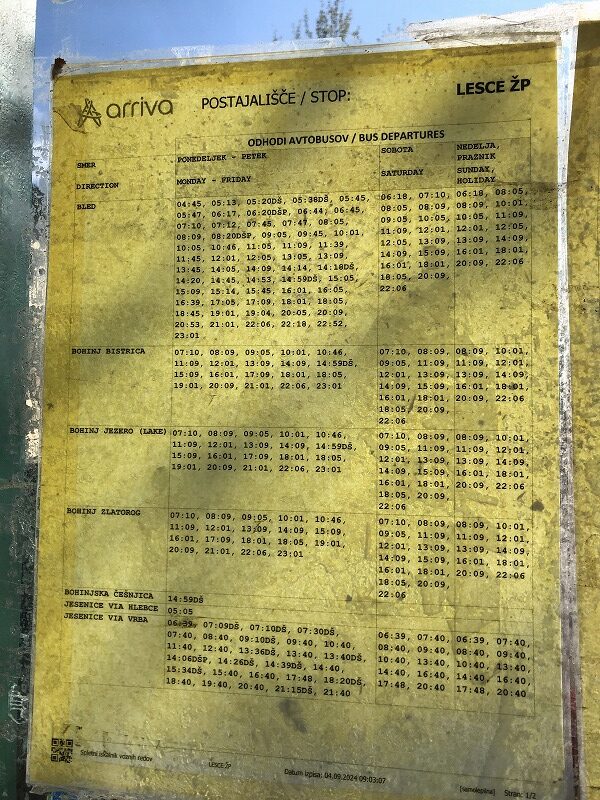 ただし、平日はかなりの本数が運航しているのですが、休日の場合は1時間に1本程度になり、さらにこのバス路線がリュブリャナから来る路線バスのため、大幅に遅れる傾向があります。