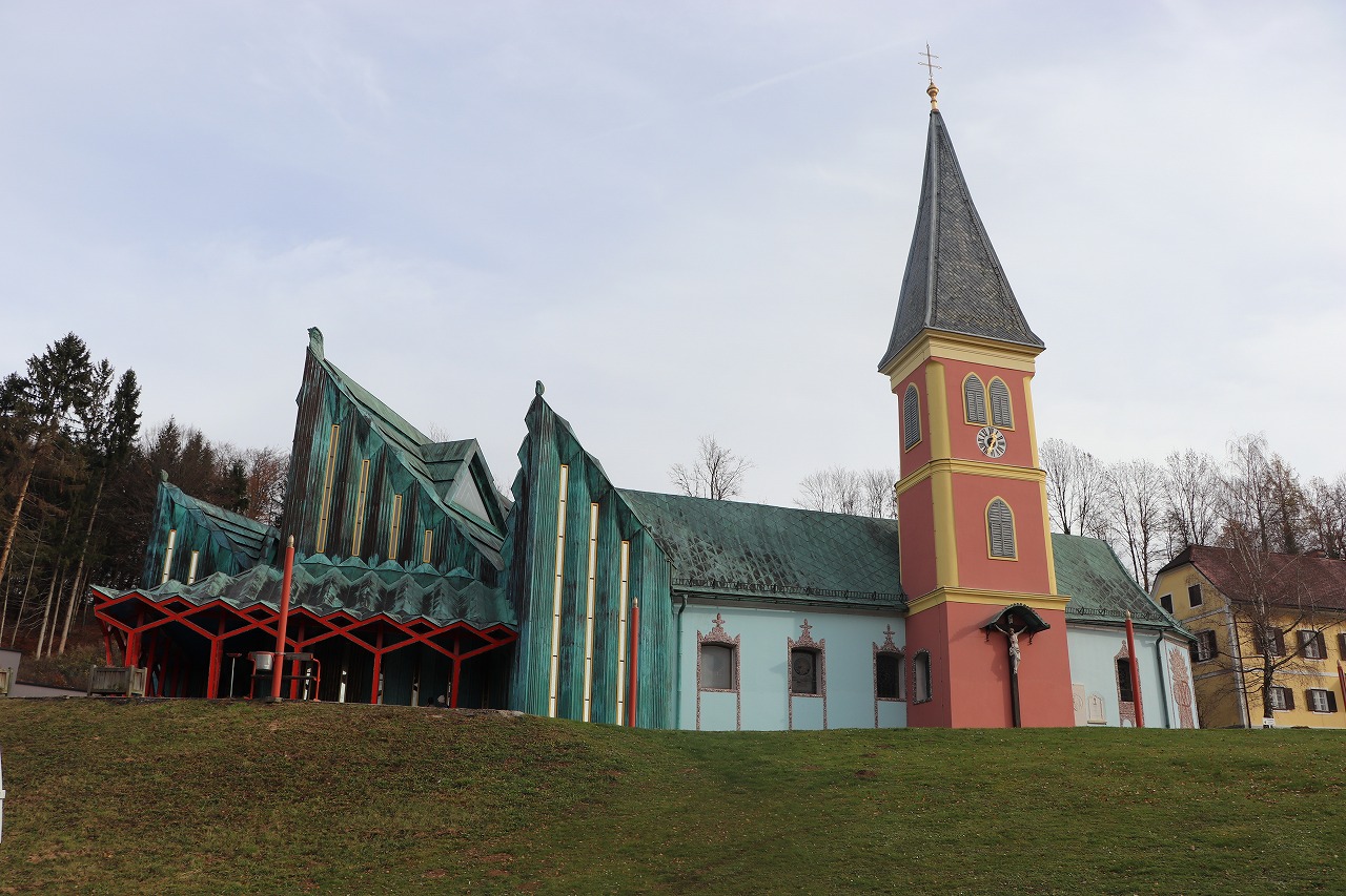 - 建築家・画家の背景:教会は建築家 Manfred Fuchsbichler によって再建・拡張され、芸術面では ウィーン幻想リアリズム(ファンタスティック・リアリズム) の巨匠 エルンスト・フックス(Ernst Fuchs) が内装を手がけています。