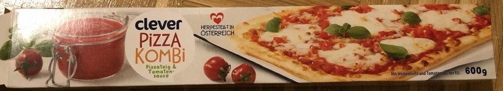例えば、オーストリアのスーパーなどでよく見かける 「clever PIZZA KOMBI」 のような商品は、生地とピザソースが最初からセットになって販売されています。