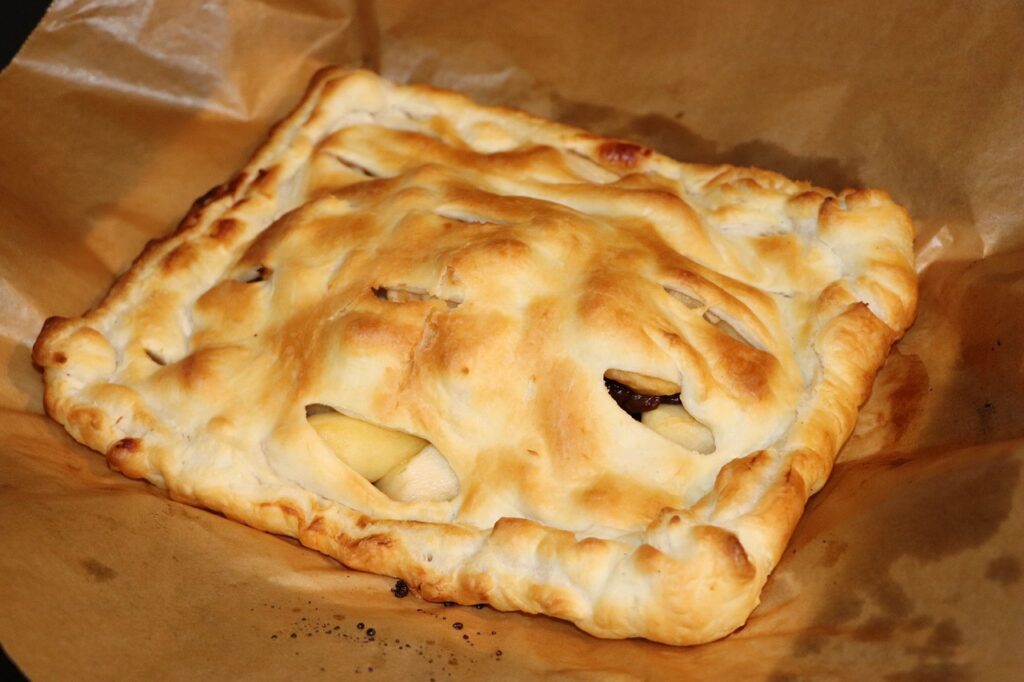焼きあがったアップルパイは、パイ生地がしっかりサクサク、中はりんごの甘酸っぱさがとろりとしていて、安いパイ生地とは思えない満足度。フィリングの甘さもちょうどよく、ストゥルーデルを作るつもりが思わぬ形でアップルパイになったとはいえ、結果オーライでした!